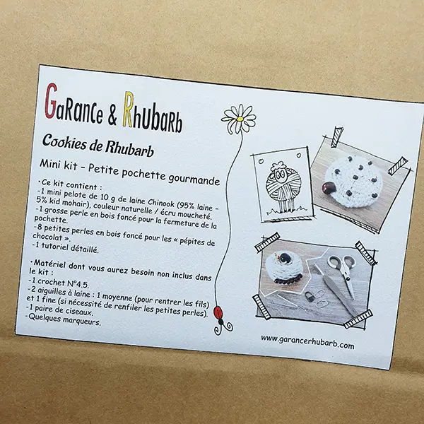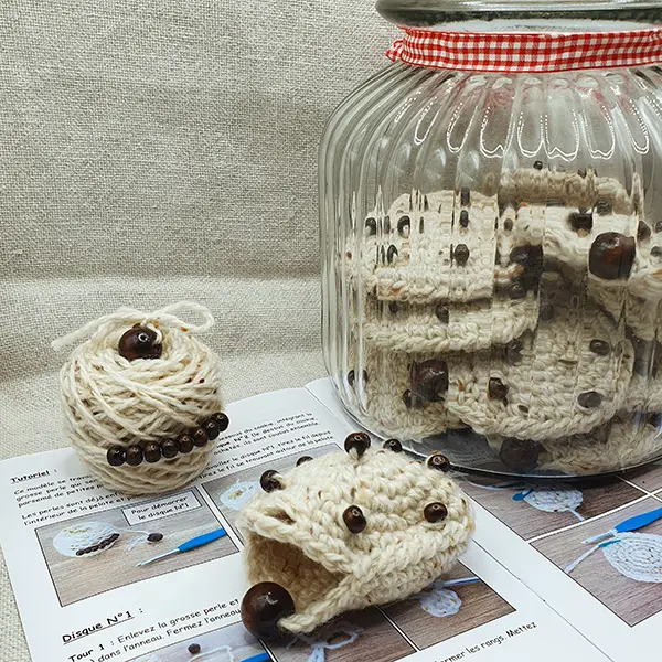 – 8 petites perles en bois foncé pour les « pépites de chocolat ».