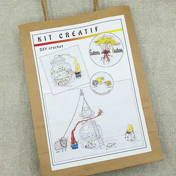 – 1 mini pelote de 10 g de laine Chinook (95% laine – 5% kid mohair), couleur naturelle / écru moucheté.